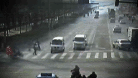 两辆停在路口的车仿佛脱离了地心引力一般,忽然在空中悬浮了起来